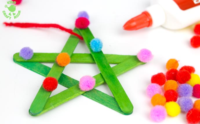Varianta cu pomponi este si mai simpla. Lipeste pur si simplu pomponi din loc in loc, pe toata suprafata stelutei.