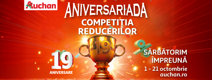 În luna octombrie sărbătorim Aniversariada – Competiția Reducerilor Auchan 2025 iar premiile 🎁 le poți câștiga chiar tu!
