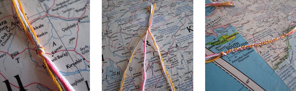 Continua incepand iar cu primul fir din stanga. Iata cum ar trebui sa evolueze bratara ta: