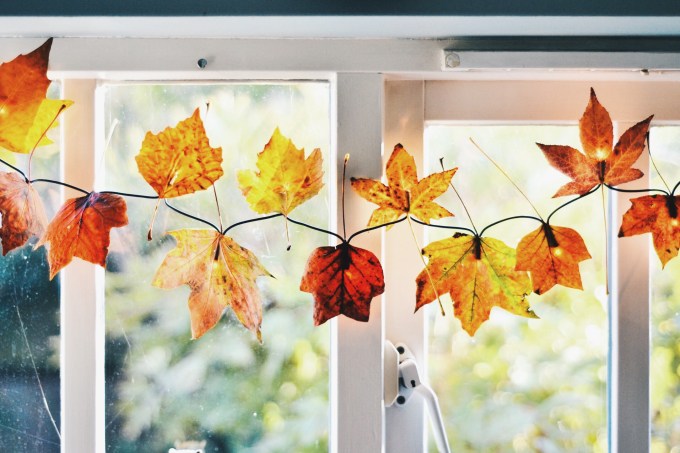 Ghirlanda luminoasa cu frunze e extrem de usor de facut. Cred ca ai intuit deja ca trebuie sa lipesti cate o frunza de fiecare beculet. Lasa sa se usuce adezivul si bucura-te apoi de lumina colorata pe care o imprastie in camera frunzele de toamna.