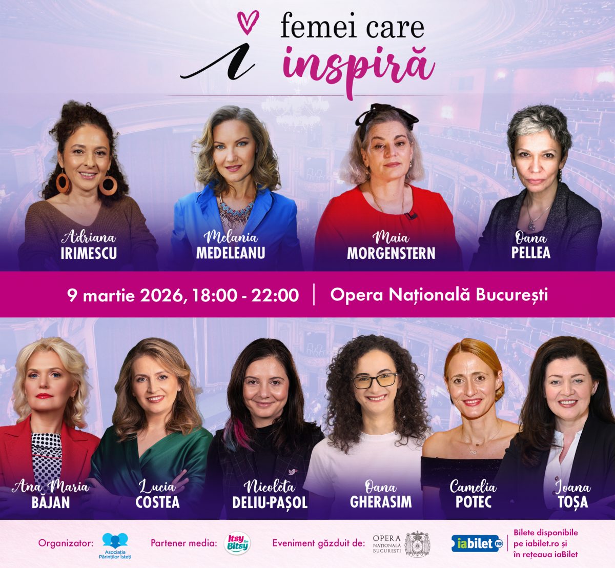 Prietenă, fiică, soră, iubită, soție, mamă… femeie. În toate rolurile ei, femeia poartă povești, emoții, forță și vulnerabilitate. Pe 9 martie 2026, aceste povești capătă voce pe scena Operei Naționale din București, la cea de-a șaptea ediție a evenimentului „Femei care inspiră”, dedicat exclusiv femeilor.