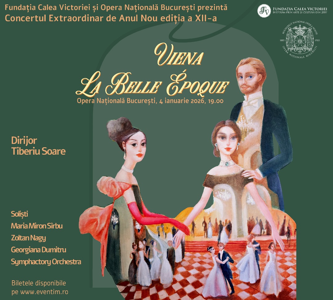 Fundaţia Calea Victoriei, în parteneriat cu Opera Naţională Bucureşti, organizează duminică, 4 ianuarie 2026, de la ora 19.00, cea de-a XII-a ediţie a Concertului Extraordinar de Anul Nou. Evenimentul propune publicului o incursiune în universul sonorităţilor vieneze din perioada La Belle Époque, prin lucrări semnate de compozitori precum Johann Strauss fiul, Johannes Brahms, Giuseppe Verdi, Jacques Offenbach, Franz Lehár, Emmerich Kálmán şi Émile Waldteufel.