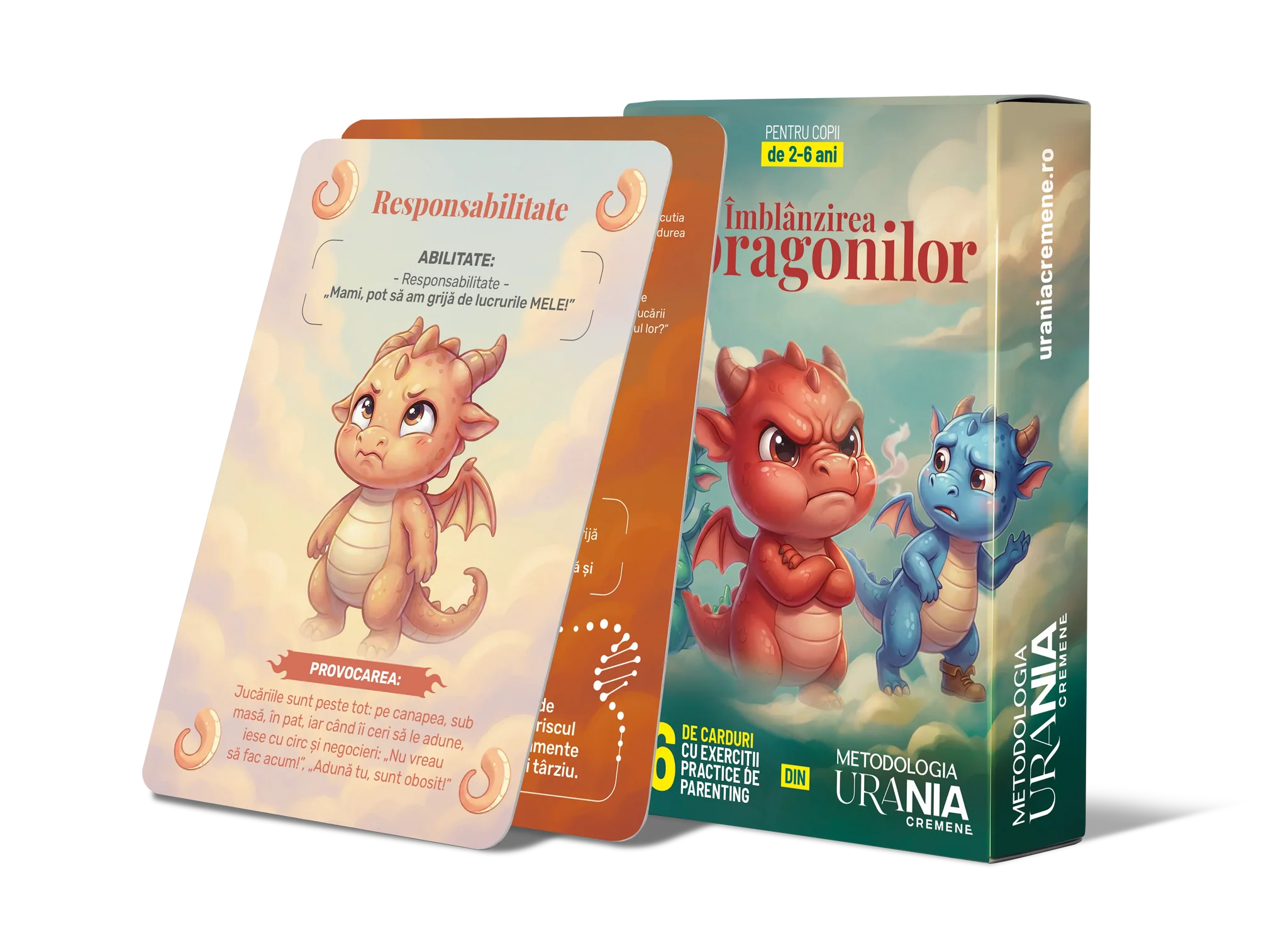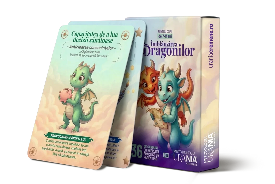 Cardurile Îmblânzirea Dragonilor, create de Urania Cremene, te ajută să vezi aceste situații puțin altfel: cu mai multă claritate în ce ai de făcut, mai mult calm și mai multă încredere în tine și în copilul tău.
