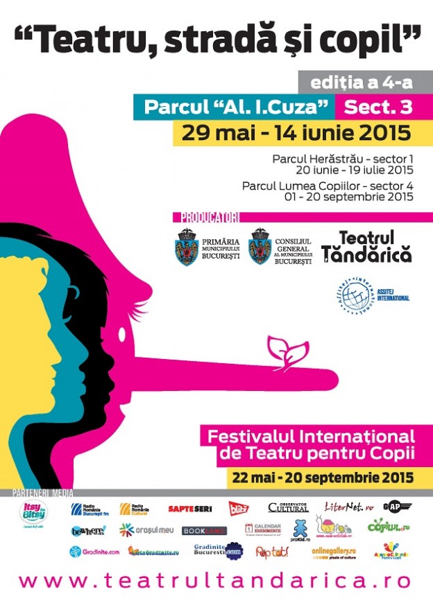 Timp de 6 zile, Festivalul International „Teatru, Strada si Copil” va aduce o mare bucurie copiilor si parintilor din Bucuresti, care vor putea viziona o gama diversificata de spectacole atat ale Teatrului de Animatie Tandarica cat si ale teatrelor si companiilor de profil din intreaga tara (Teatrul Bacovia – Bacau, Teatrul de Papusi Puck – Cluj-Napoca, Compania MAG – Bucuresti, Teatrul Aschiuta – Pitesti, Miniartshow by Ioana Ginghina – Bucuresti).