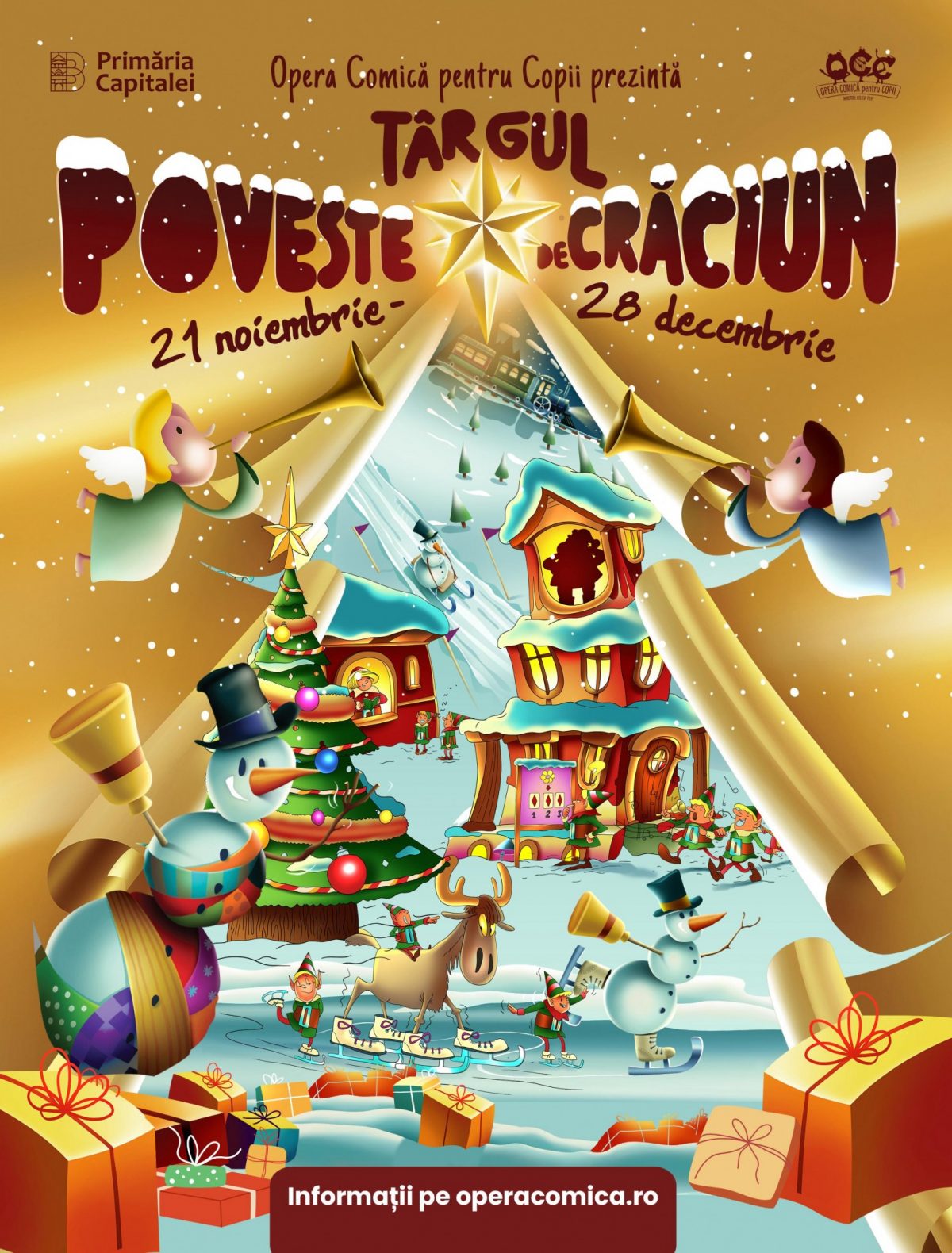 De la patinoar și carusel, până la ateliere, filme, spectacole, campanii umanitare și întâlniri cu Moșii sărbătorilor, Târgul „Poveste de Crăciun” transformă Grădina Operei Comice pentru Copii în cel mai spectaculos tărâm de iarnă al Bucureștiului. Evenimentul se desfășoară între 21 noiembrie și 28 decembrie 2025, în fiecare vineri între orele 16:00–21:00 și sâmbătă–duminică între 10:00–21:00, cu intrare liberă. Accesul la activități se face pe baza cardului OCC, disponibil în incintă.