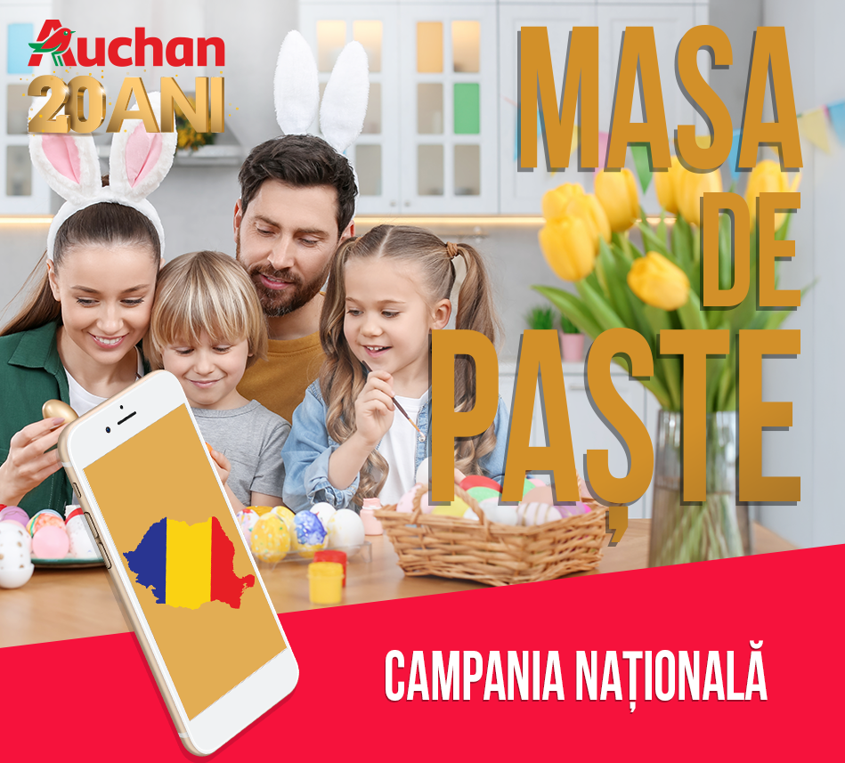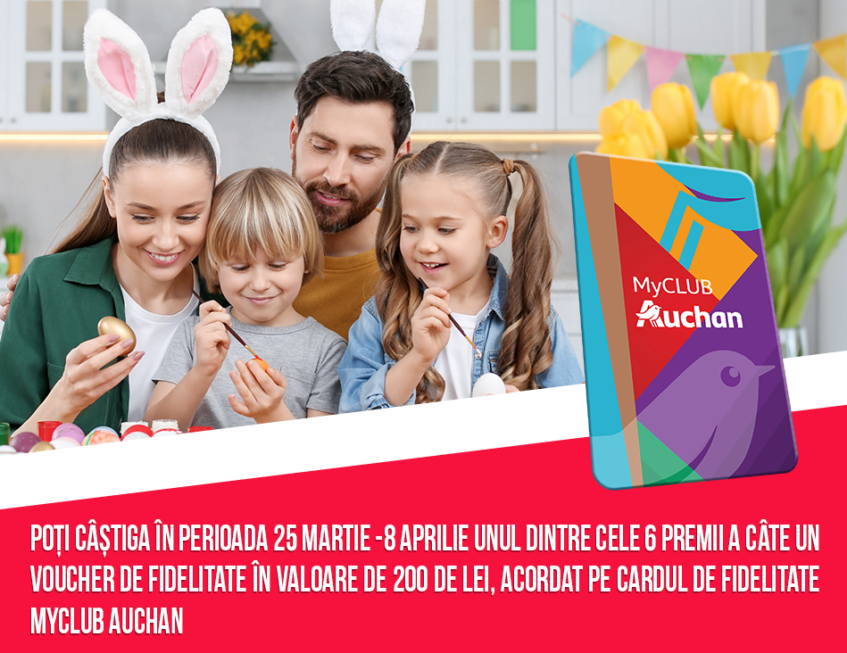 Accesează formularul de concurs în perioada 25 Martie – 08 Aprilie, înscrie-te și ai șansa să primești unul dintre cele 6 premii oferite de Auchan în campania „Masa Auchan de Paște”!