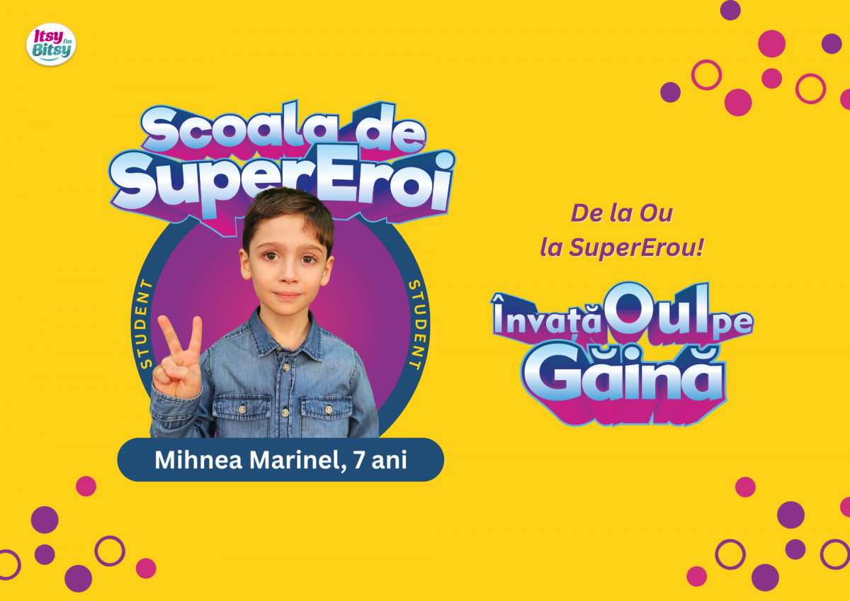 Mihnea Marinel are 7 ani și participă în perioada 16-19 martie la Școala de SuperEroi Itsy Bitsy – Învață oul pe găină, ediția a 11-a.