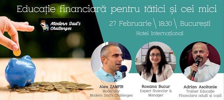 Miercuri, 27 februarie, de la ora 18:30, are loc la Hotel International din Bucuresti o noua intalnire Modern Dad’s Challenges, pe tema „Educatie financiara pentru tatici si cei mici”.