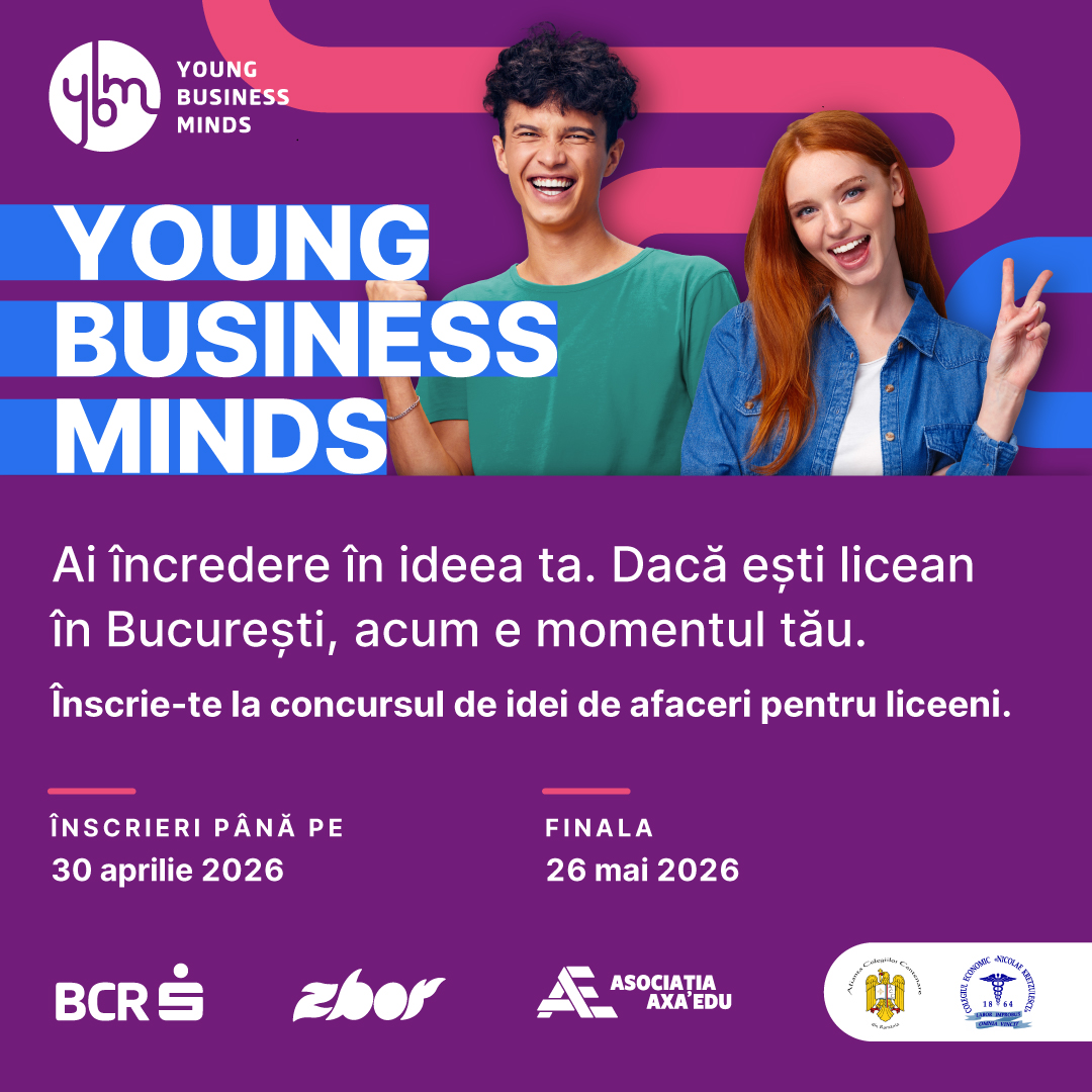 Înscrierile pentru ediția 2026 a competiției Young Business Minds sunt oficial deschise pentru liceenii din București care vor să facă primul pas spre antreprenoriat, transformând idei încă neșlefuite în planuri de afaceri viabile, cu sprijinul BCR (Banca Comercială Română), Asociatia Axa Edu și al Colegiului Economic “Nicolae Kretzulescu”. Termenul limită pentru înscriere este 30 aprilie 2026.